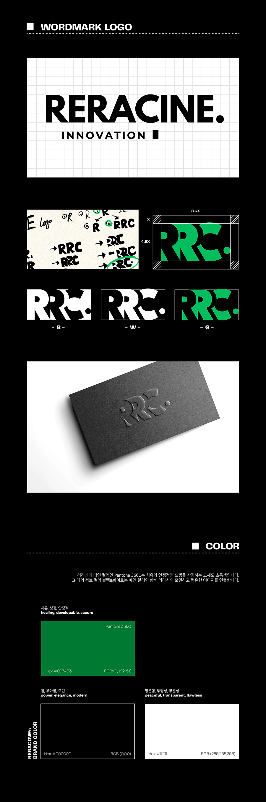 바로 'RERACINE (리라신)' 입니다. 'Re-'는 '다시, 재(再), 원상태로 돌아감'의 의미를 가지고 'Racine'은 프랑스어로 '뿌리, 근원'이라는 의미를 갖고 있어 '본래의 뿌리, 근원으로 돌아간다'는 뜻으로 제작하였습니다. 문제성 피부로 인해서 가려졌던 본연의 좋은 피부를 다시 되찾도록 도와다는 의미로 코스메틱 브랜드의 분위기와 맞게 너무 '가볍지 않은 전문적인 느낌'을 기본으로 '피부의 재생', '심플한 어감'을 모두 자연스럽게 나타낼 수 있게 표현하였고 이러한 다양한 요소가 결합된 네이밍이 완성되었습니다. 또한 상표등록가능성도 높았기 때문에 채택 후 상표등록도 무사히 완료하였습니다. 기회가 되신다면 즉각적인 수분 주입을 행하는, 피부 과학을 통해 되살아나는 피부 본연의 아름다움을 담은 코스메틱 브랜드 RERACINE을 경험해보세요. 감사합니다.